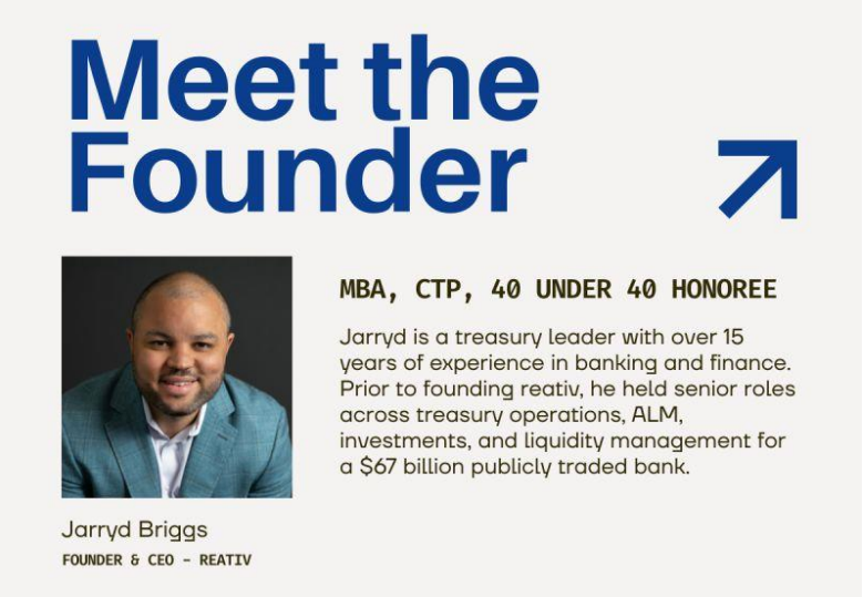 Jarryd Briggs founded reativ after spending more than 15 years inside bank treasury teams and seeing firsthand how critical, but underserved, this function is within financial institutions.